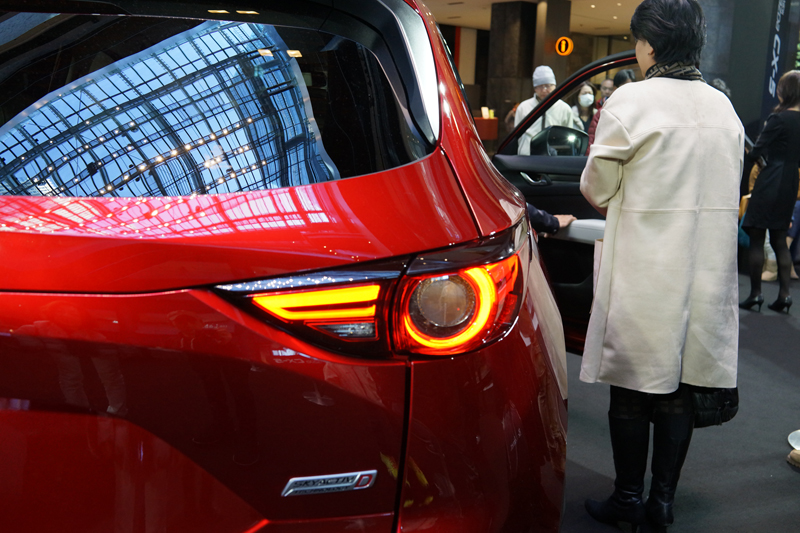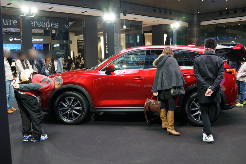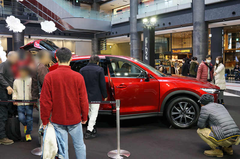 グランフロントの展示スペースでは今までにも何度か新型車の先行展示を行っていますが、そのいずれの展示よりも今回のマツダCX-5は賑わっている模様。