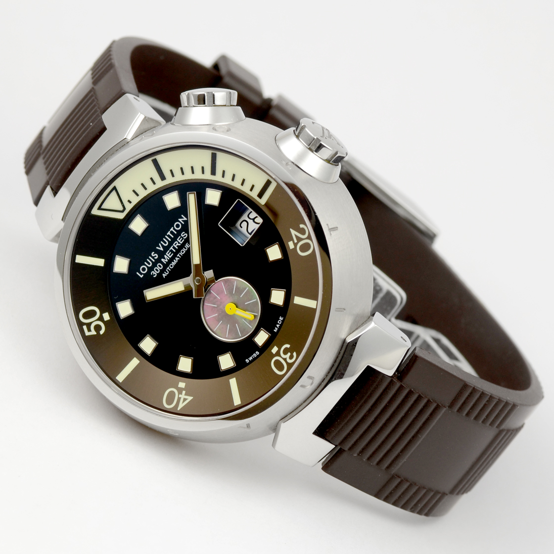 そういった意味でタンブールは腕時計が好きというよりも、「ルイ・ヴィトンというブランドが好き」というロイヤルカスタマーが購入するタイプの製品で、大切に扱う人も多く、程度が良い個体が多いのも特徴。