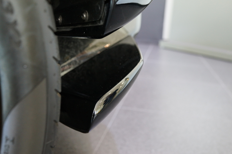 マフラー位置もセンターに移動しており、テールパイプにもスリットが入ります(リアウイングのスリットとデザインを統一しているのかもしれない)。