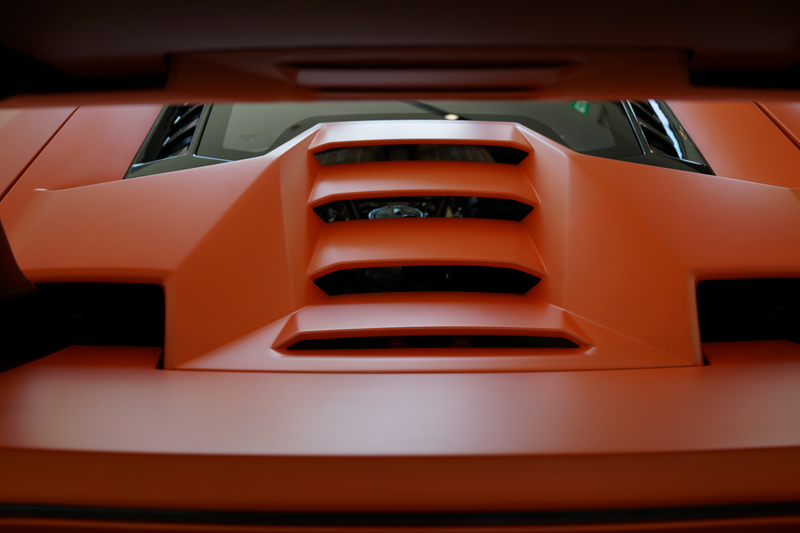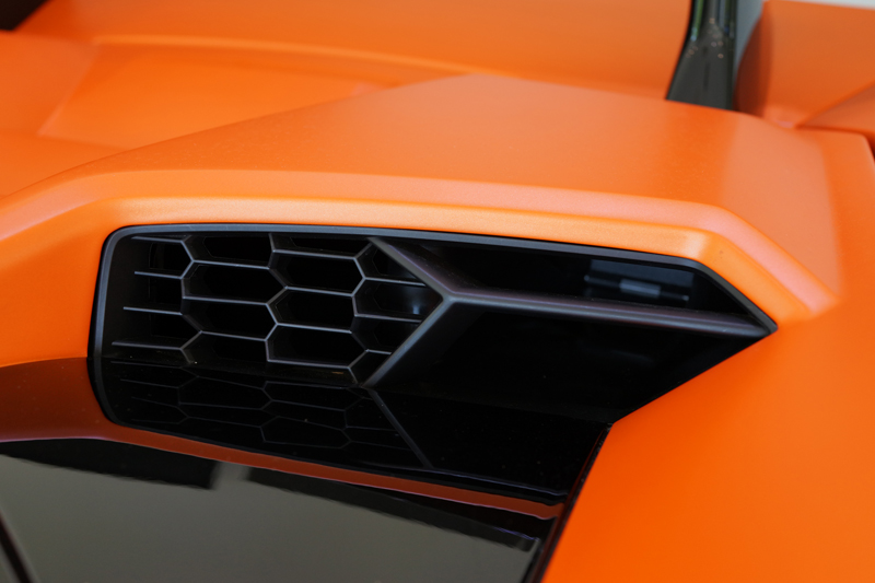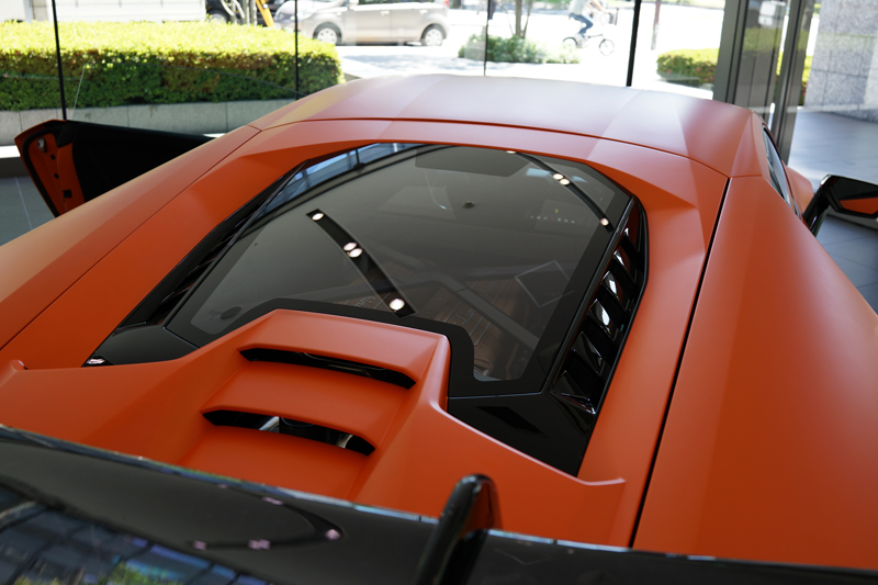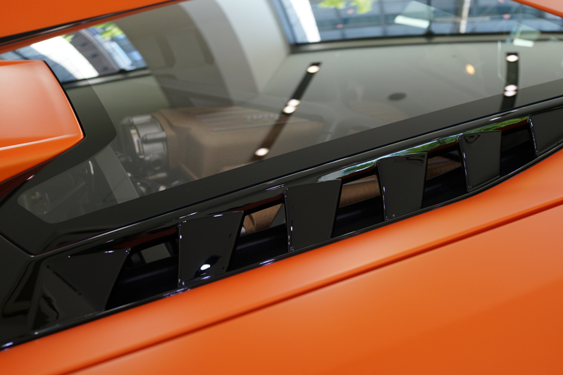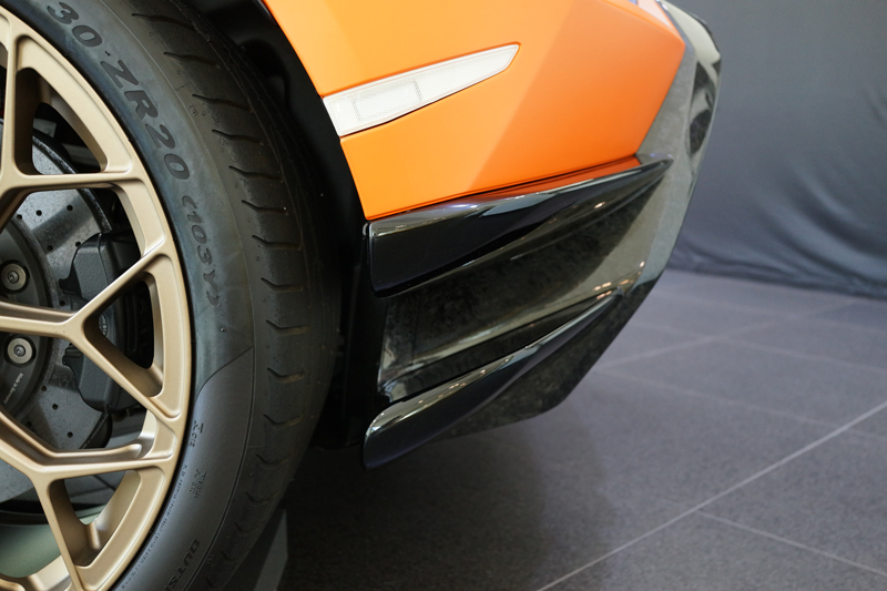ここが標準のウラカンと大きく異なるところですが、エンジンフードの形状そのものから変更されており、フードの後ろ1/3ほどが独自の形状に(ポルシェ911ターボを連想させる)。