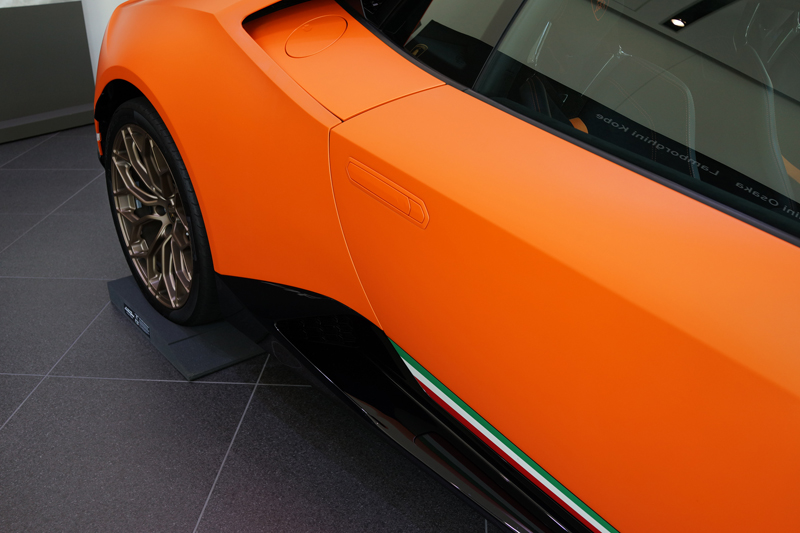 車両はよくメディアで見かけるマットオレンジ(Arancio Anthaeus=アランチョ・アンタエウス)となっています。