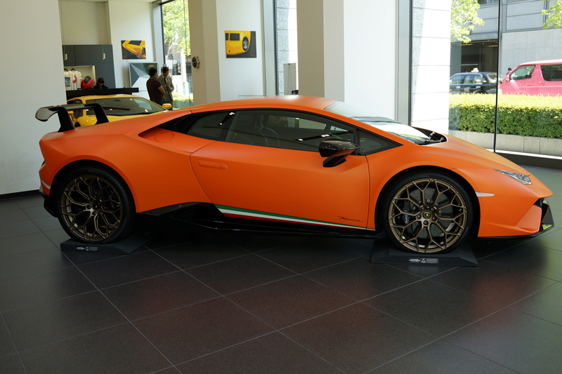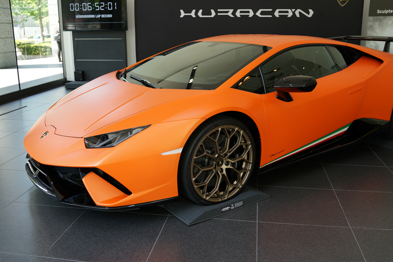さて、ランボルギーニ・ウラカン・ペルフォルマンテを見にランボルギーニ大阪さんへ(6/17まで展示中)。
