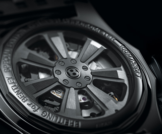 「ブライトリング・フォー・ベントレー」は単に既存の腕時計に自動車メーカーの名前を載せただけではなく、ベゼルがベントレーの内容に見られるダイアモンド加工となっていたり、ローターがホイール形状となっているのが面白いですね(ローターの裏側が偏心していると思われる。でないと巻き上げができないので)。