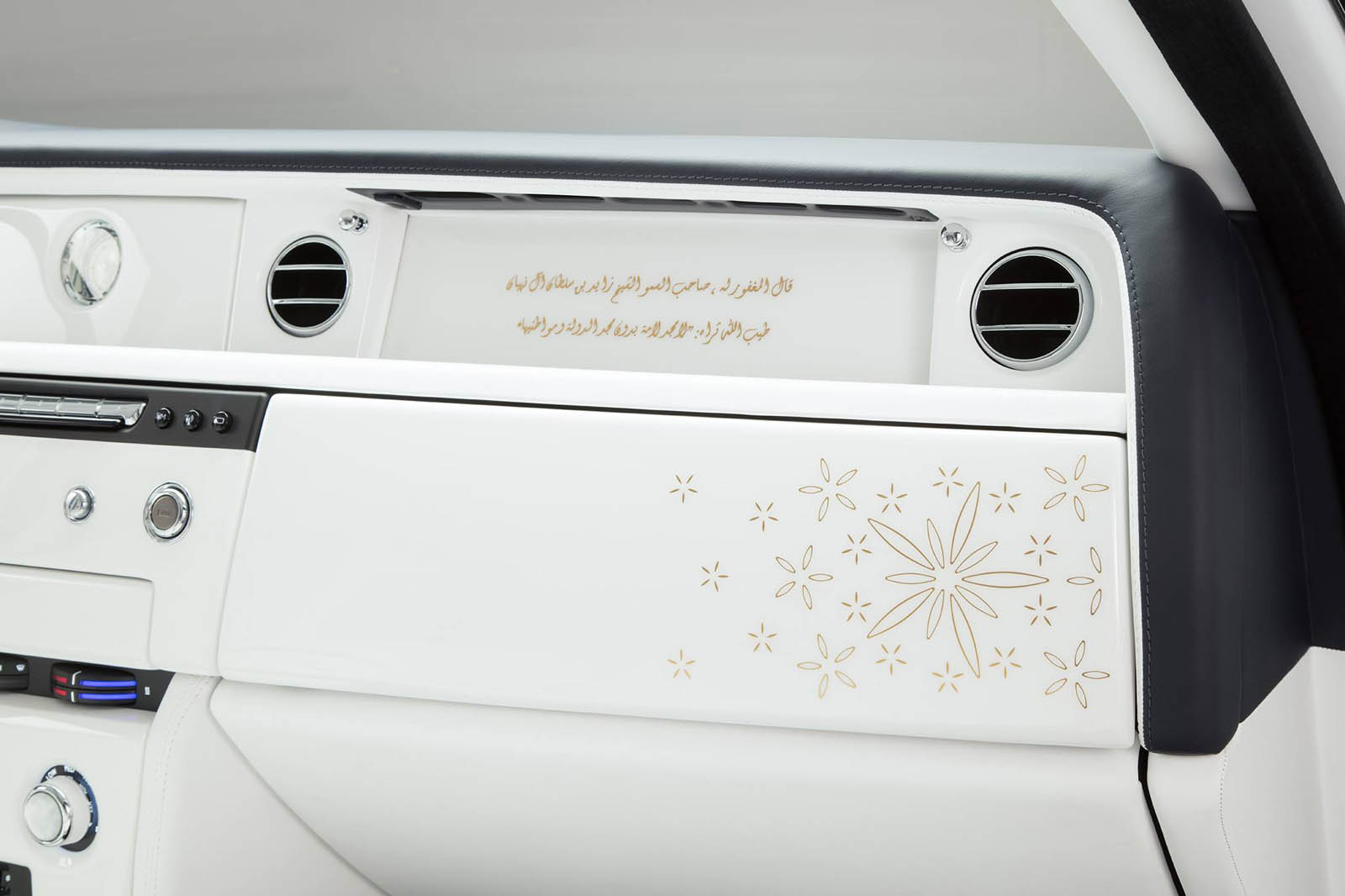 ホワイトとゴールドとの2トーン仕上げとなっており、ルーフインナーにはモスクの壁と同じ柄。