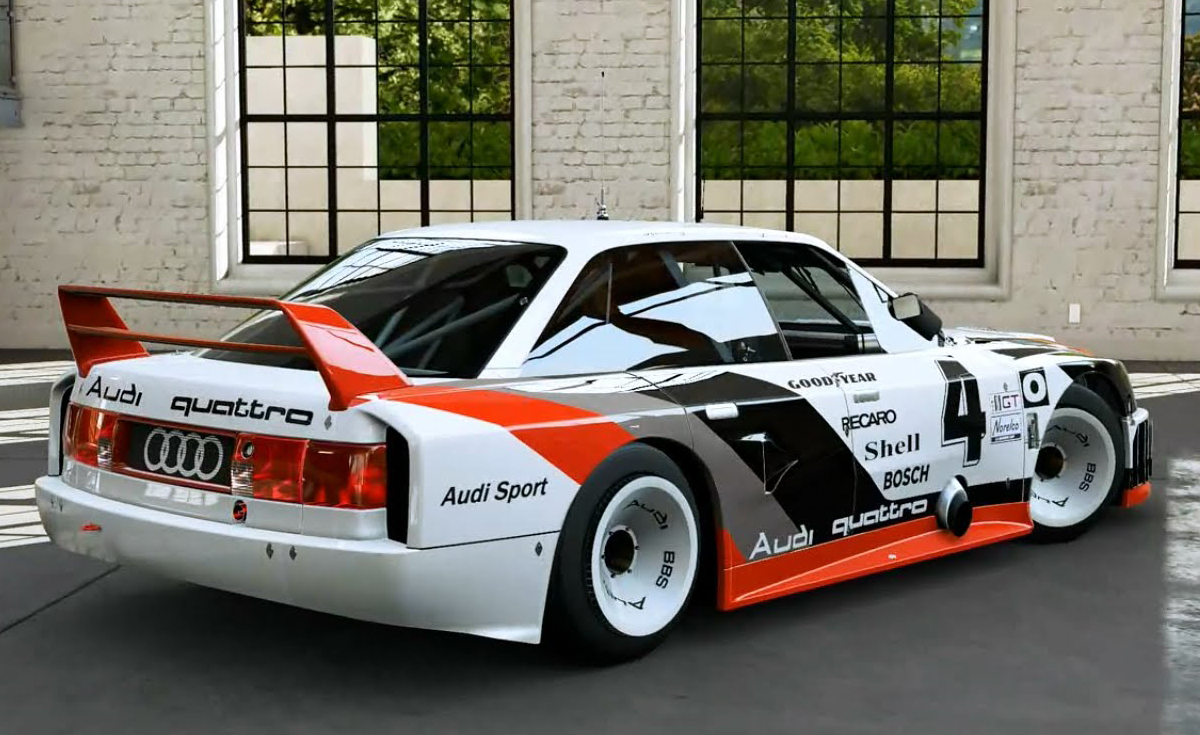 RS4アバントのデザインモチーフは「90 Quattro IMSA GTO」とのことで、ハニカムを用いたデザイン、大きなエアインレット、30ミリ広げられたホイールアーチはここから来ているようですね(下の画像がその90 Quattro IMSA GTO)。