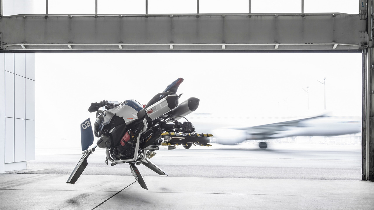 なおBMWとのホバーライド・コンセプト(ホバーバイク)はBMWモトラッドのデザイン(とくにGS)、そしてボクサーエンジンを模した形状となっており、正直言って「超カッコイイ」と思います。