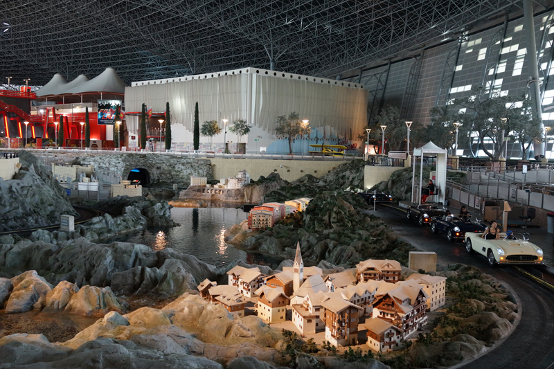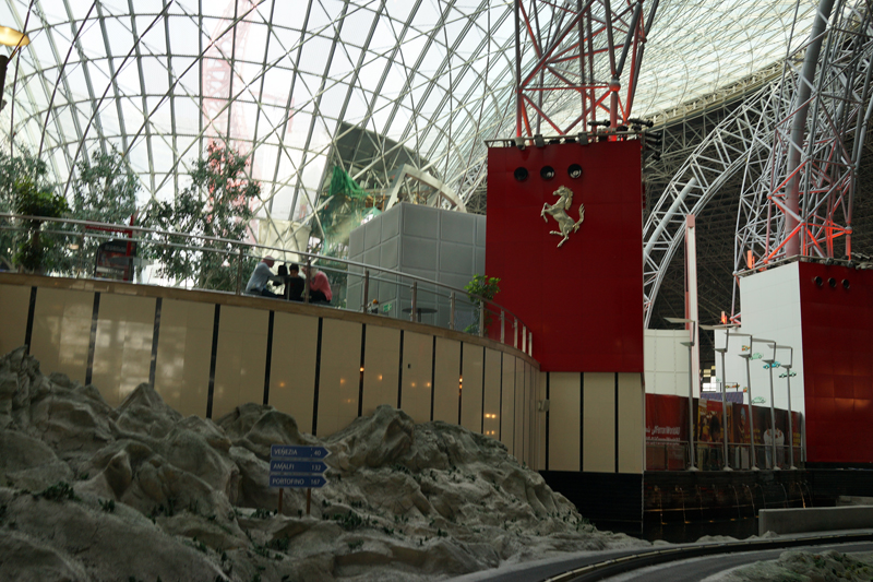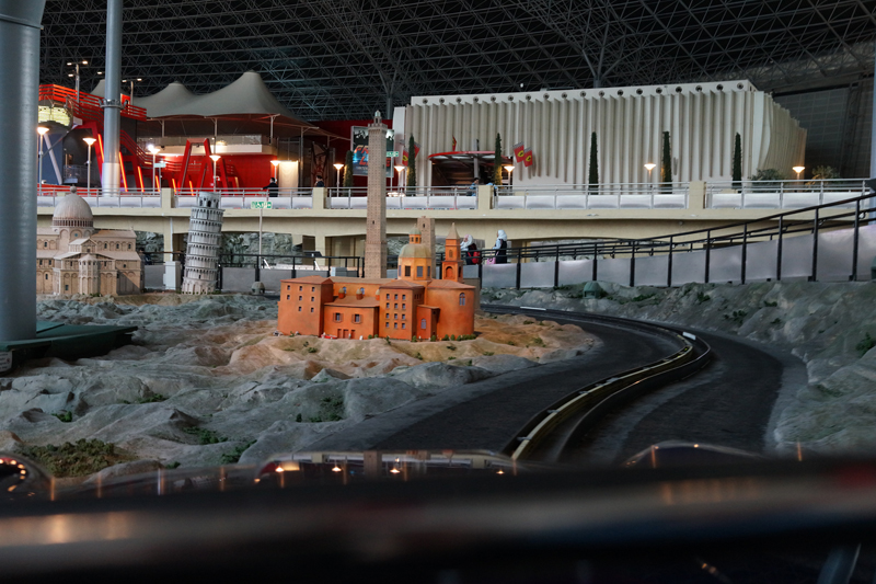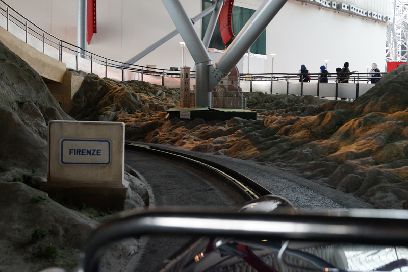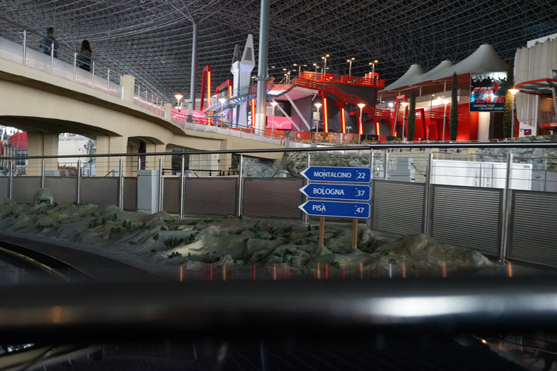 フェラーリのクラシックカーを模した車に乗ってイタリアの名所を回るのですが、ピサの斜塔など意外と模型が良くできていて見ごたえがあります。
