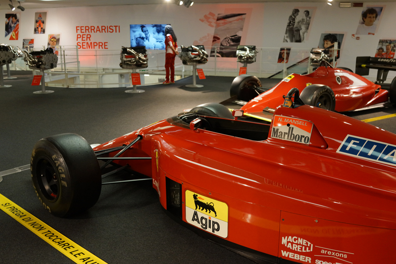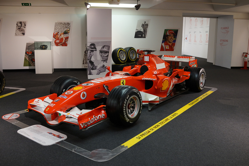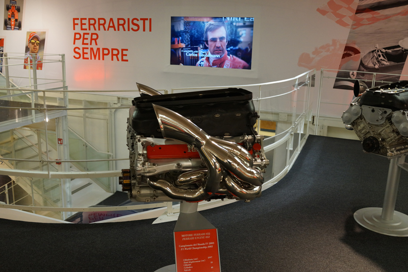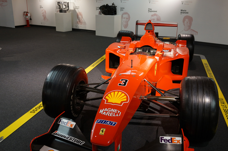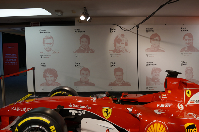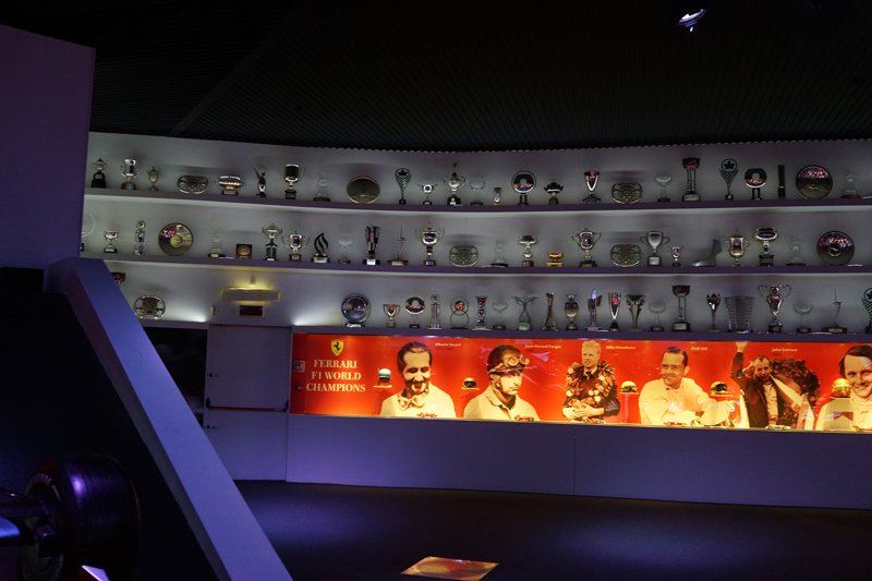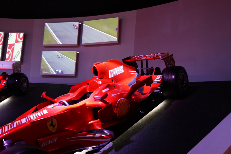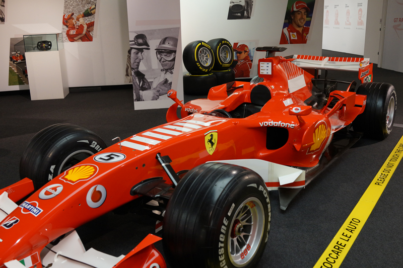なおこのホールはムゼオ・フェラーリ・マラネッロ自慢のひとつで、ぼくが帰ろうとしたときにも、イケメンのスタッフが「おいちょっと待て!F1を展示してあるホールは見たのか?あれを見ずに帰るんじゃないだろうな!」と声をかけてきたほど。