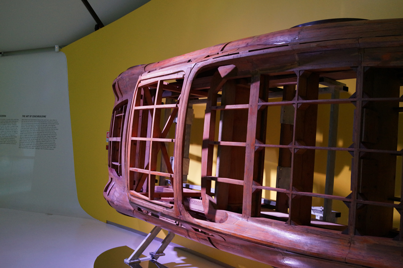 広いスペースに数多くのフェラーリが並べられ、ワイヤーを使用したディスプレイモデル、当時実際に使用したと思われる木型の展示も。