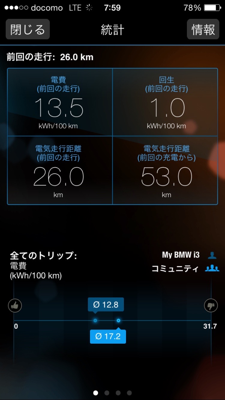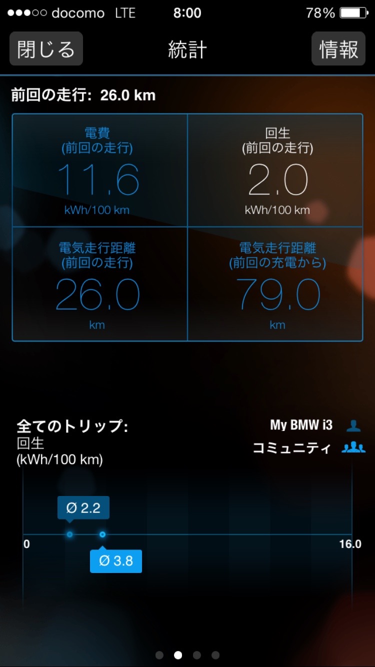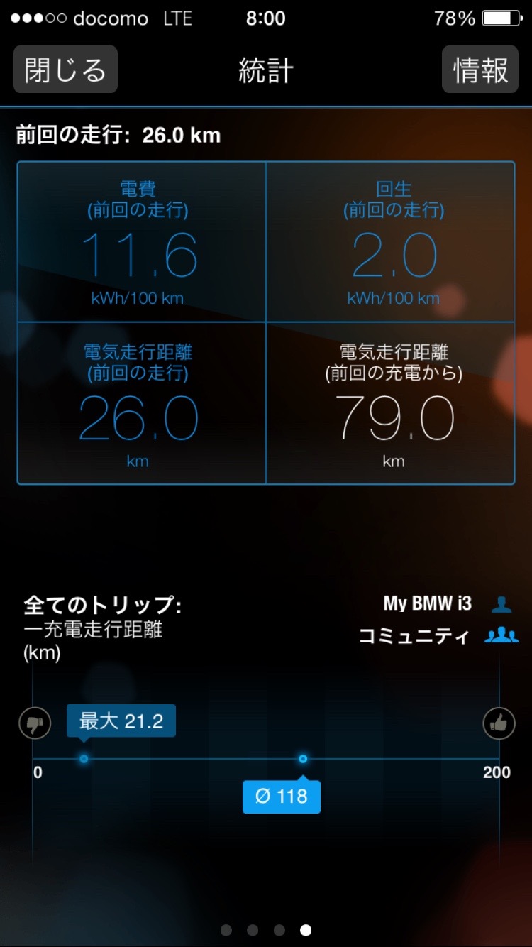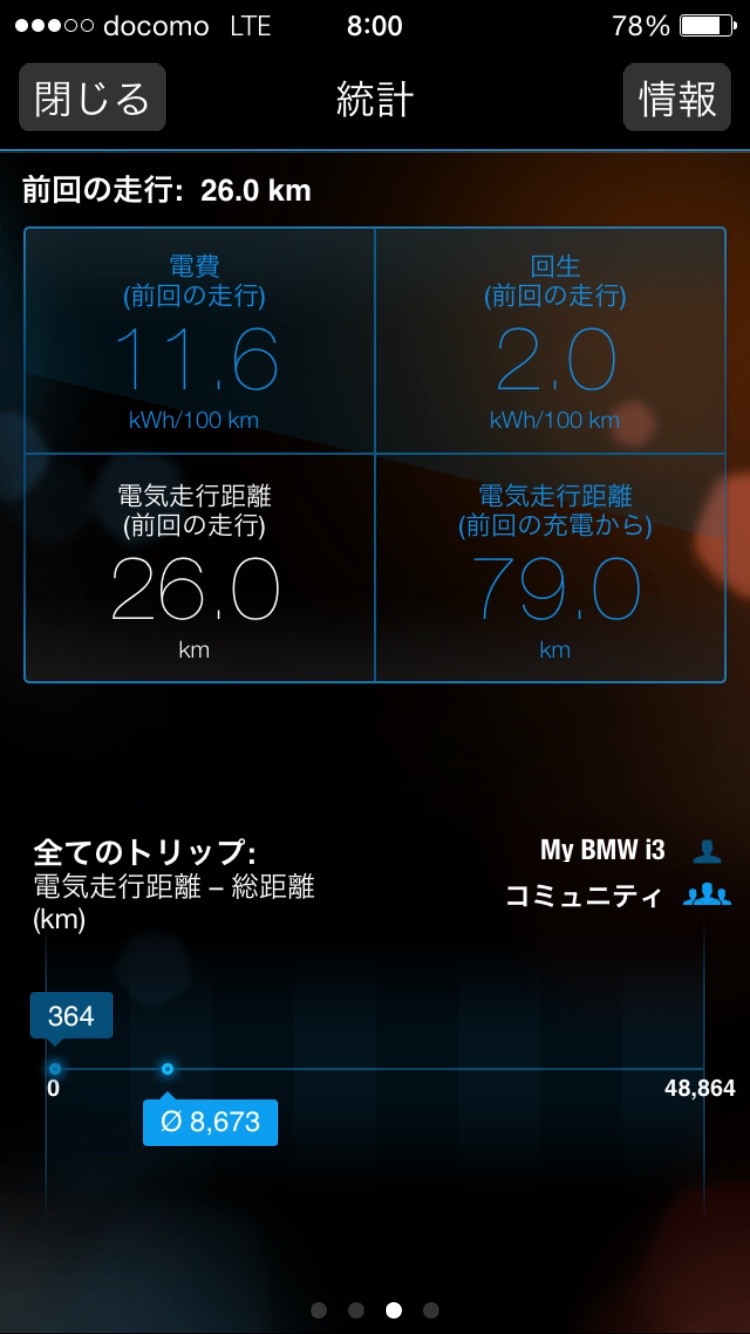 コミュニティに参加すると、自分の電費が平均よりも良いのかそうでないか、回生の活用状況ほか、自分の運転が平均に比べてエコでないかどうかも知ることが出来、なかなかに面白いアプリです(BMWはすでに”BMW ConnectedDrive”を提供していますが、iシリーズについては、さらにこの機能を強化したものとなる)。