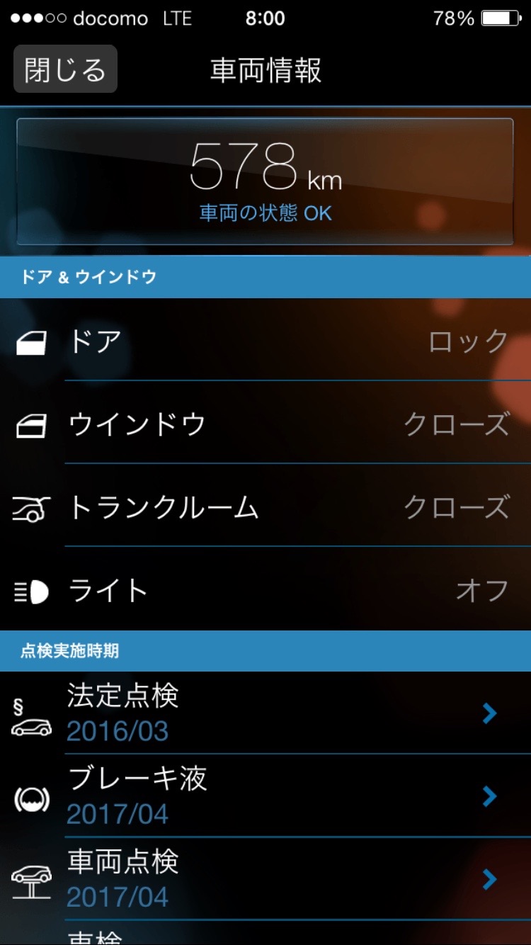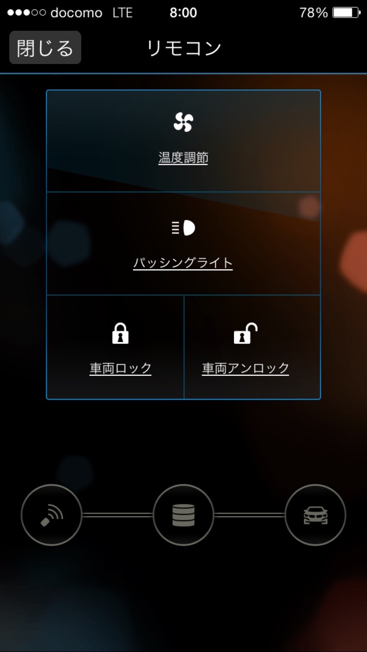 車両の位置や進んでいる方向、リモートキー代わりにライトの点灯などができる模様(車両によって異なると思われる)。