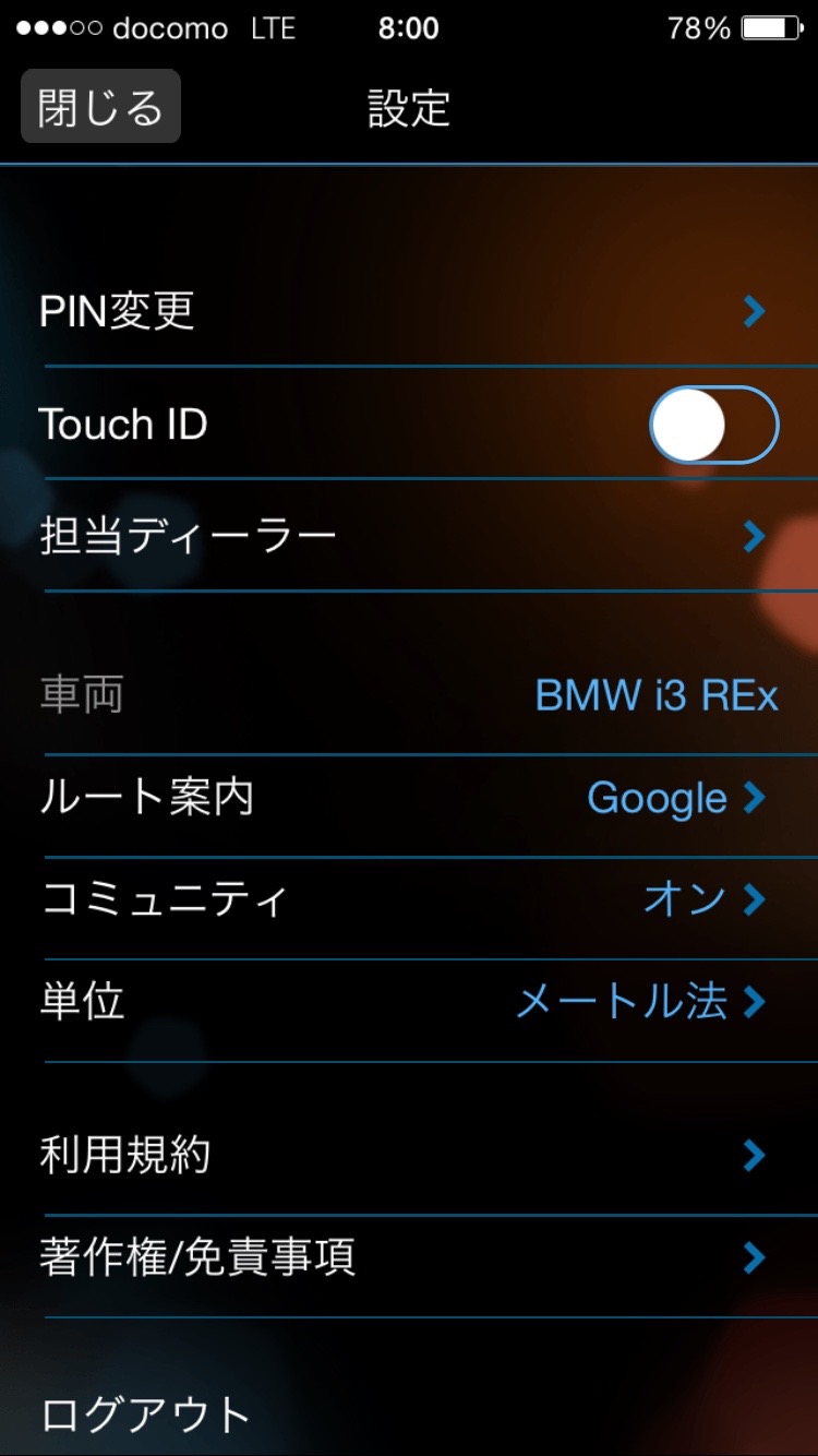 i3には専用アプリ”iRemote”が配布されており、車両ナンバーなどを登録すればこのアプリが使用可能となります(アプリと車両は必ず対になる)。