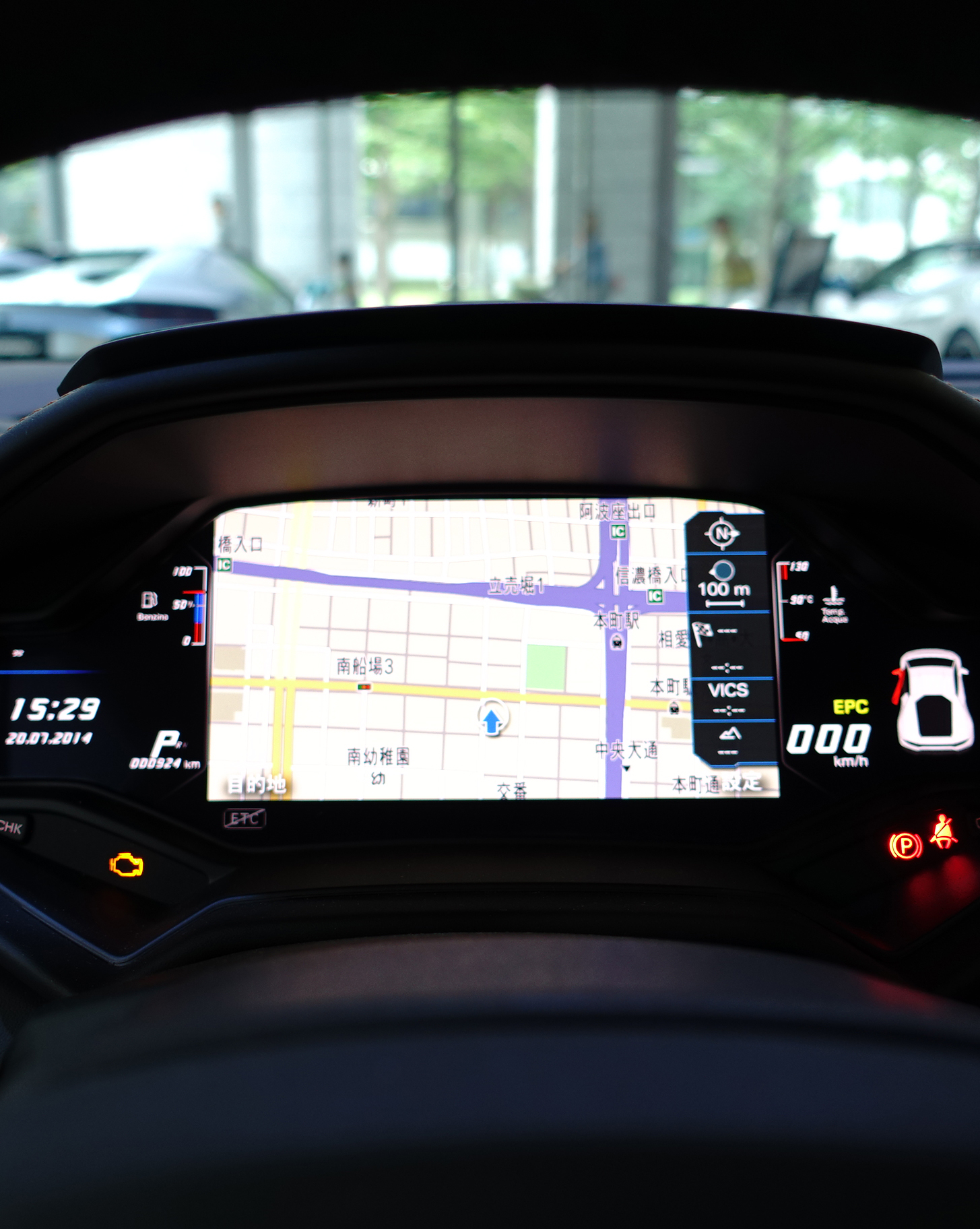 もちろんウラカンにはカーナビが最初から内蔵されているのですが、メータークラスター内に表示されるためちょっと見づらいということ、そして入力が煩雑ということ、カーナビ表示画面にするとメーターが見づらくなる、ということを懸念しています。
