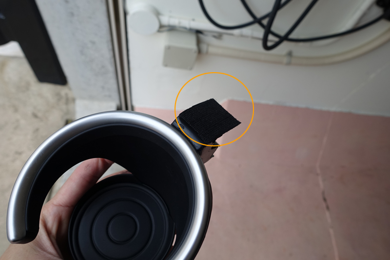 ここがもっとも飲み物がこぼれた時のダメージが小さく、運転席からも助手席からもアクセスしやすい(運転席からはちょっと遠いですが、常になにか飲むわけではないのでOK)こと、取り付けた際に目立ちにくいこと、等考えています。