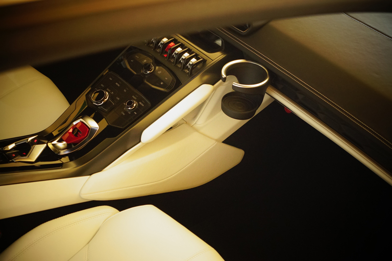 ウラカンにはノーマル状態でドリンクホルダーが存在せず、オプションでも一応用意されていますが見かけがイマイチ。