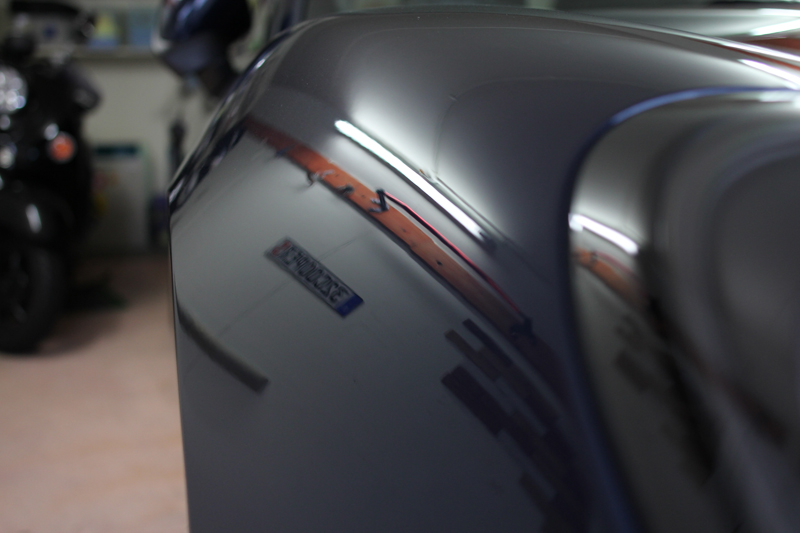 これは上記のように露天に置く機会が多々あり、雨のち晴れといった状況ではウオータースポットができやすいということに配慮いただいたもので、その甲斐あって雨に遭ったのちでも比較的ボディは綺麗な状態を保つことができています。